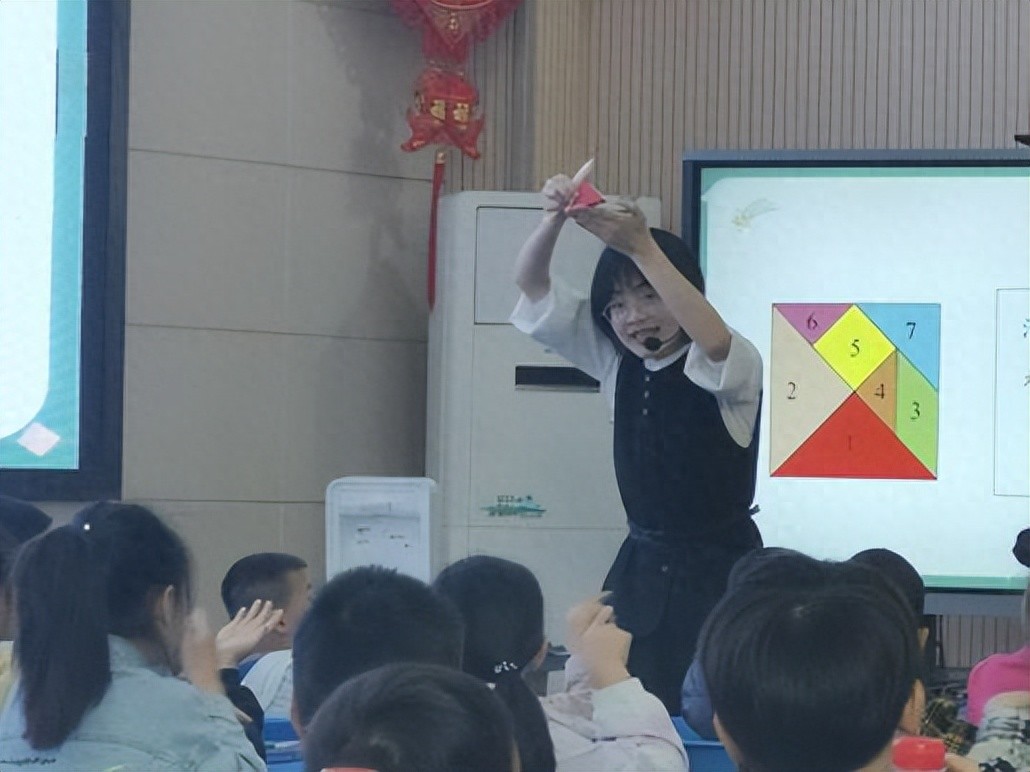 活动在潼南区人民小学黄芸瑶老师执教的《神奇的七巧板》示范课中拉开序幕。课堂上,黄老师通过趣味拼图活动,带领一年级学生在玩中学,展现了“做数学”的教学新样态。