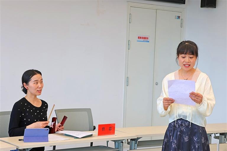 “唱得不错,但还有些味道没出来,每个音符都要完全地唱出来……”老师曾恋一边肯定着她出色的表演,一边给予指导。从第一期便开始学习清音,如今吕依维算是老学员了。今年她已经到提升班学习,同时还在初级班当“班助”,除协助老师的日常工作之外,也能进一步巩固提升自己的专业水平。