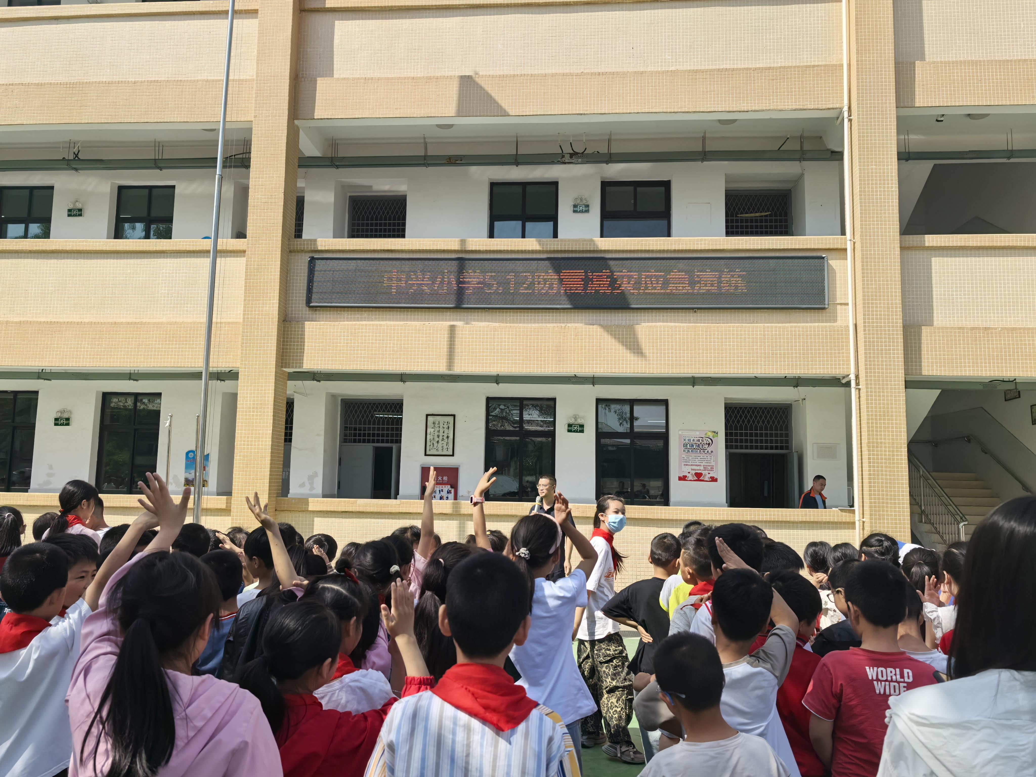 为按照《遂宁市安居区 2025 年“5.12”防灾减灾日集中宣传活动的通知》要求,结合学校实际,5.12日上午9时,遂宁市安居区中兴小学开展“人人讲安全.个个会应急”防震减灾应急疏散演练活动。