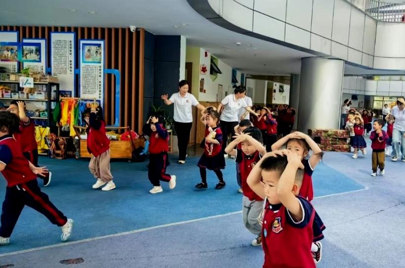 当第二次警报声响起,孩子们在三江新区红星幼儿园老师的组织下,按照预定的疏散路线,双手护头,弯腰低身,快速而有序地撤离教室和活动区域。整个过程中,老师们时刻关注孩子们的安全,确保不落下任何一个孩子。
