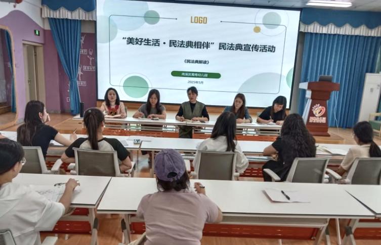 为深入贯彻学习《2025年“法治四川行”一月一主题法治宣传教育活动》的文件精神,进一步提升教职工的法律素养,增强依法执教意识,2025年5月12日下午,宜宾市南溪区蜀粤幼儿园组织全体教职工开展了《民法典》专题学习活动。