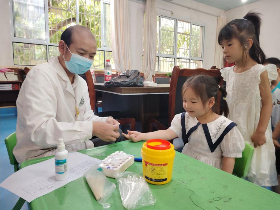 在幼儿园教师的协助下,三家卫生院医护人员一边友好地鼓励着幼儿,一边认真细致地为每个幼儿的身高、体重、心肺、口腔、血红蛋白等项目检查。整个过程井然有序,共对172名幼儿进行了健康体检。