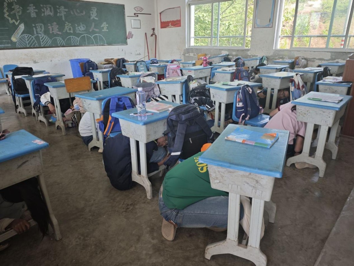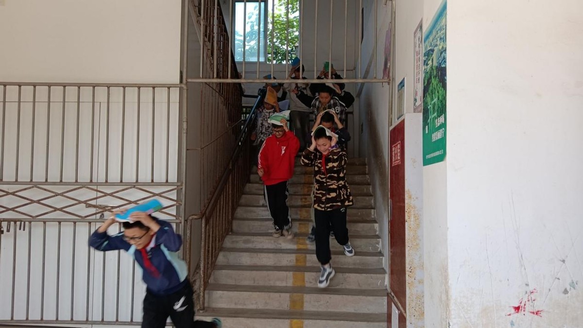 随着校园内警报声骤然响起,演练正式拉开帷幕。“地震来袭,紧急避险!”各班教师沉着冷静,迅速指挥学生就近躲避在课桌下,双手抱头,蜷缩身体,做好自我防护。待“地震波”减弱,疏散指令下达,学生们在教师的引导下,用手、书本等护住头部,按照预定疏散路线,弯腰低姿,快速有序地撤离教学楼。整个过程中,师生们配合默契,紧张而不慌乱,没有出现拥挤、推搡现象。全校师生安全、迅速地疏散至操场指定区域。各班级迅速清点人数,并向演练总指挥报告,确保无一人遗漏。