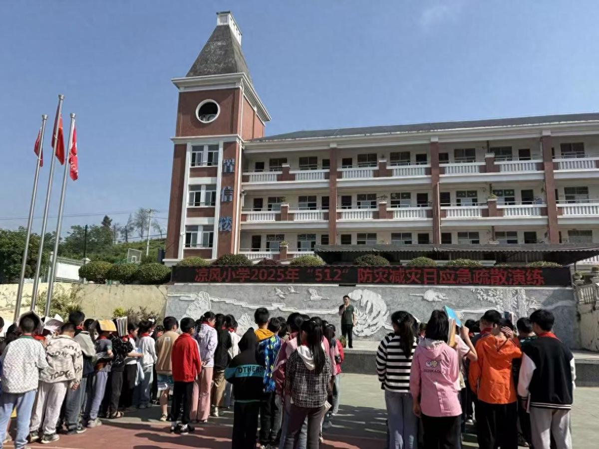 为深入贯彻落实国家防灾减灾工作要求,进一步强化师生安全防范意识,提升应对突发事件的应急处置能力,在第17个全国防灾减灾日到来之际,遂宁市安居区拦江镇凉风小学校于2025年5月12日开展了“5.12”防灾减灾日应急疏散演练活动,全校师生共同参与,上演了一场生动的“生命安全实践课”。
