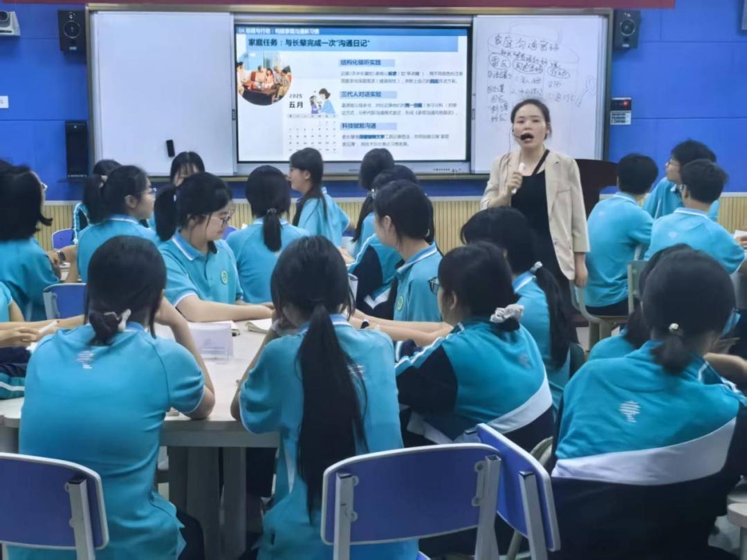 杨小琴、尹瑶分别设计“角色互换体验剧”,学生化身“家长”演绎生活矛盾,通过“非暴力沟通四步法”练习,掌握倾听与表达的技巧,搭建亲子情感桥梁。