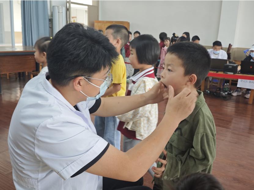 检查口腔和牙齿。牙齿健康关乎咀嚼功能,3-6岁为龋病高发期,医护人员检查了儿童牙齿发育状况及蛀牙情况。