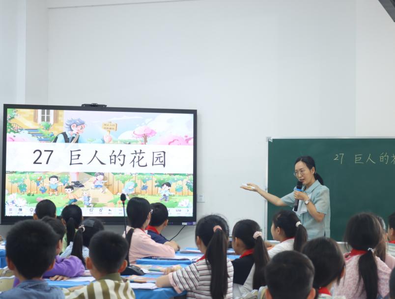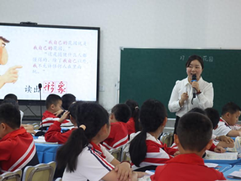 翠屏区永兴镇中心学校高级教师张秀英执教《巨人的花园》第一课时,张老师带领学生们感受花园的美丽,巨人的凶狠、自私,对比了花园的奇妙变化,整节课思路清晰,语言生动,成功激发了学生学习的兴趣。
