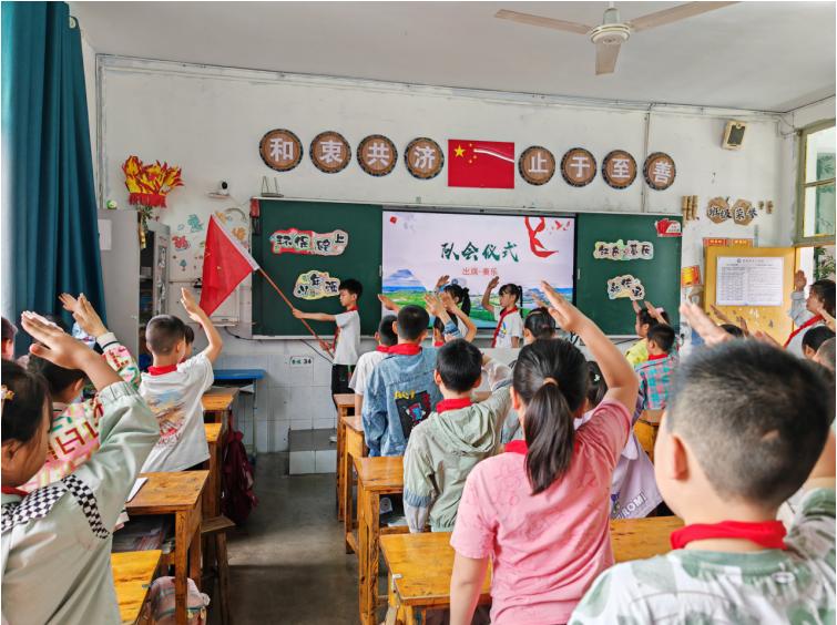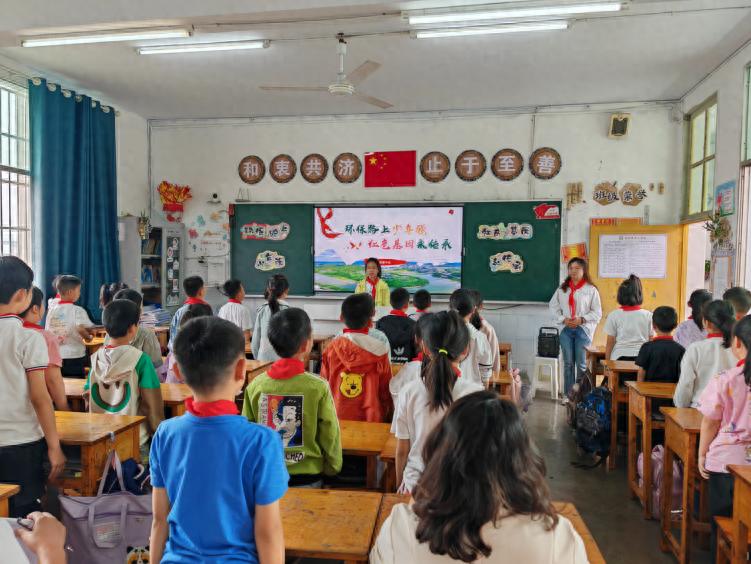 队课开场的队会仪式庄重热烈。“红色旋律奏环保”环节,绿水小队用废旧物品制作的鼓演奏红色歌曲,创意十足。“红色知识闯关”以趣味游戏让学生学习知识。“红色创意工坊”注重实践,“环保小侦探”外出找污染源,“革命火炬创作赛”培养创新协作能力。“庄重承诺”环节,学生写下誓言并宣誓,气氛达到高潮 。