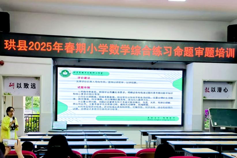 为深入贯彻新课标理念,切实提升县域内小学数学教师的命题专业能力,2025年5月16日,由珙县教师发展中心主办的“小学数学综合练习命题审题培训”活动在珙县实验小学校开展。作为承办单位,该校高度重视此次活动,精心筹备,为活动的举办提供了有力保障。