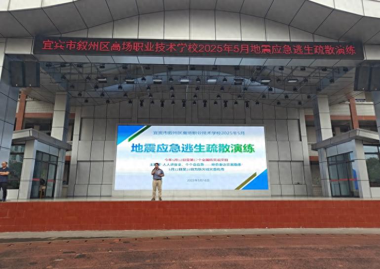 为纪念第17个全国防灾减灾日,进一步增强师生防震减灾意识,提升应急避险与自救互救能力,2025年5月16日上午,宜宾市叙州区高场职业技术学校组织全体师生开展了“5·12”地震应急逃生演练,全校师生以高效、有序的行动上演了一场生动的安全实践课。