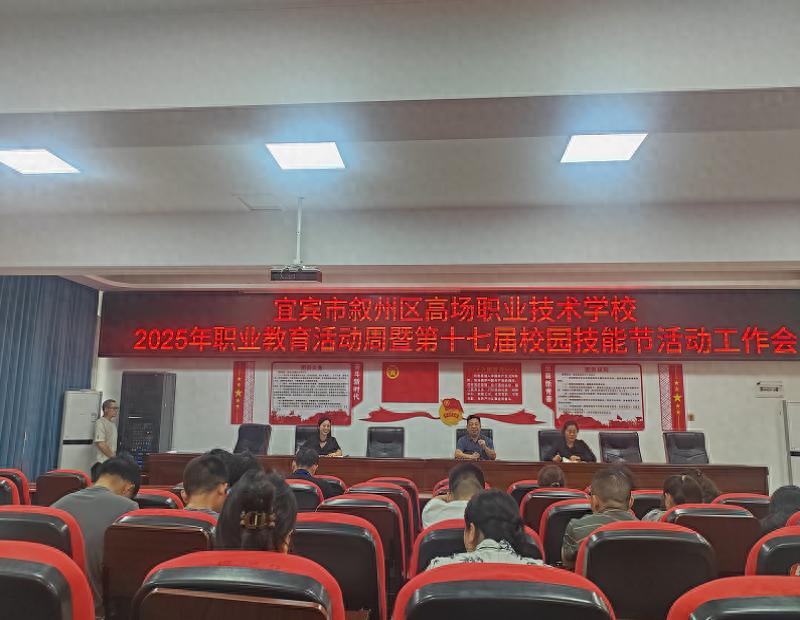 为全面落实党的二十大决策部署,积极践行“劳动光荣、技能宝贵、创造伟大”的新时代风尚。近日,宜宾市叙州区高场职业技术学校召开了职业教育活动周暨第十七届校园技能节工作部署会,会议由学校校长樊平主持,围绕把握活动内涵,推动职业教育与社会需求深度融合展开部署。