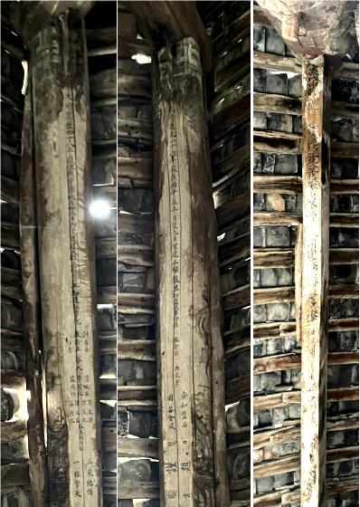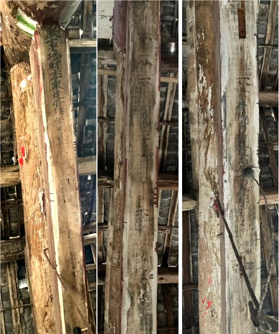 南池寺正殿和前殿内共有十余根大梁有题记,其中正殿五根、前殿若干根,分别为: