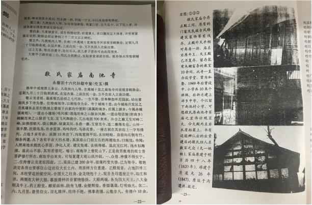(3)南池寺村已逝老人敬伦玉曾于2011年撰有《古刹南池寺庙记》一文,称寺建于万历四十八年、移建于清道光二十六年与新考有出入,其寺庙宗教描述与吕祥甫所述相近。另述有连二寨名称的来历。寺庙记中提到的《敬氏宗谱》和族单可作重要参考。