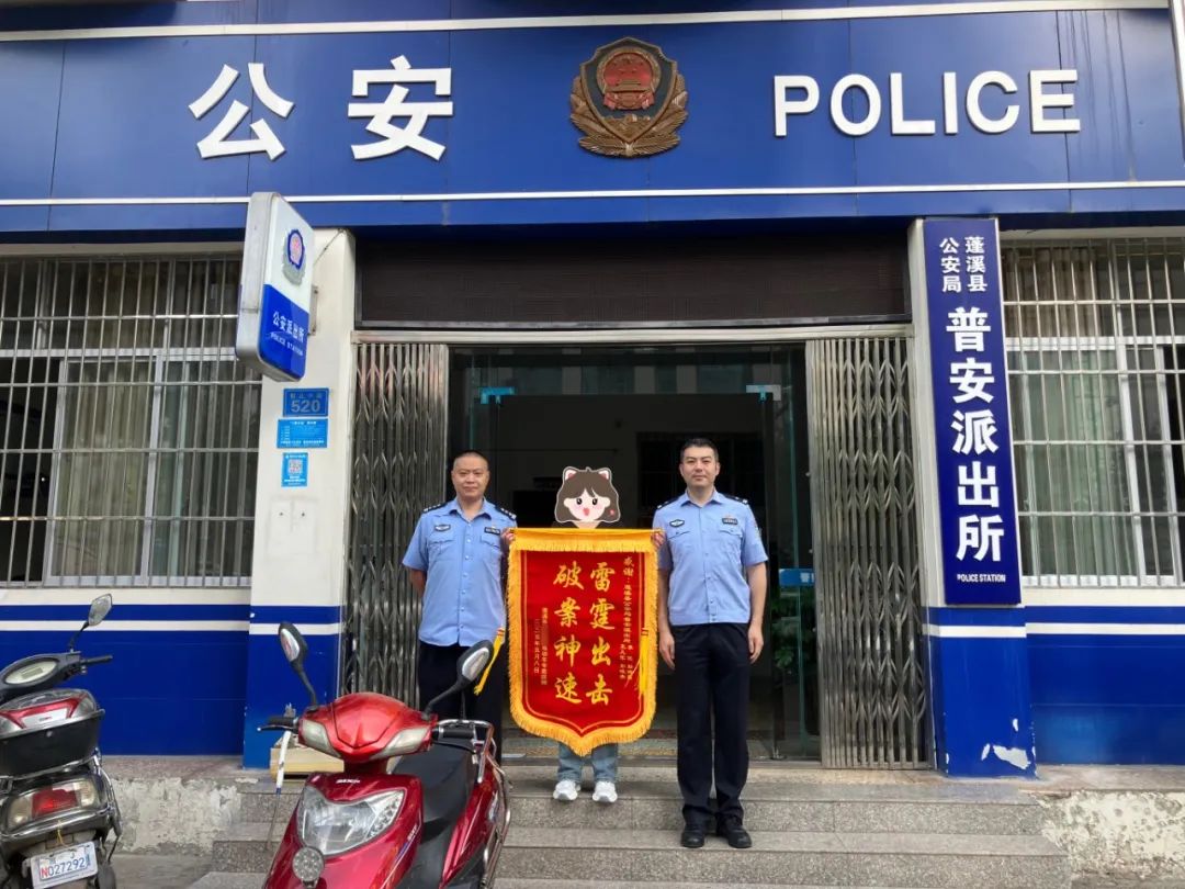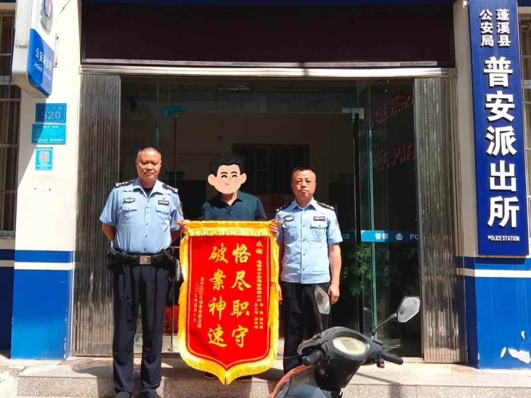 近日,两面印着金色大字的锦旗被送到普安派出所民警手中,报案商户用最质朴的方式,表达着对民警快速破案的感激之情。(来源:遂宁公安)