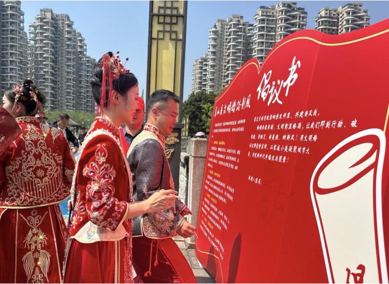 “这场集体婚礼太有意义了!既有满满的仪式感,又省去了繁琐的流程。”新人田皓天难掩喜悦之情,他表示,回去后一定会把这次特别的体验分享给同事和亲朋好友,积极宣传婚事新办、简办的新风尚。
