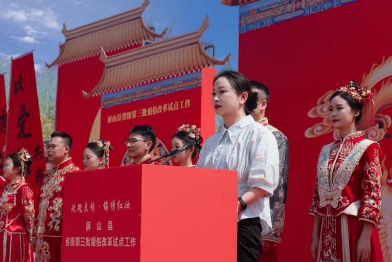屏山县民政局党组书记、局长李芳介绍,此次集体婚礼是省级第三批婚俗改革试点工作的重要内容,屏山县大力推进婚俗改革工作,发扬中华民族传统家庭美德,精细化、科学化、高效化做深做实婚姻登记服务工作,积极创新、攻坚克难、奋勇争先,助力青年一代开启幸福婚姻,共享美好生活。