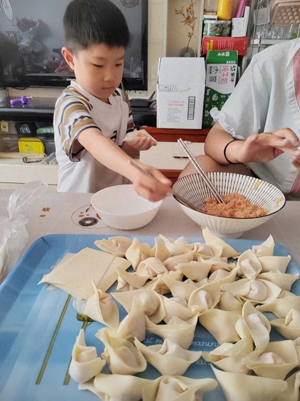 孩子们在家长带领下参与采买、摘菜,学习包饺子,还发挥创意制作了水果拼盘;他们认真扫地拖地,确保每个角落都干净。