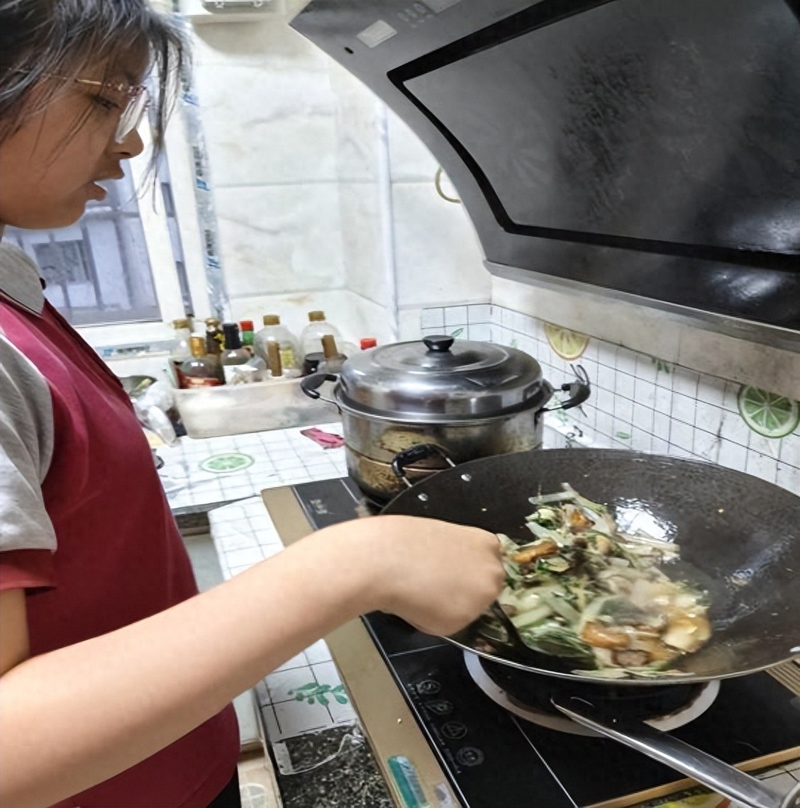 在各班班主任的倡导与家长支持下,五年级同学们热情似火。他们欢快地走进厨房,宛如小当家般亲自动手准备食材、烹饪菜肴。瞧,有的同学精心挑选新鲜蔬菜,那专注的眼神仿佛在与蔬菜深情对话,细致甄别,只为选出最鲜嫩的那一棵;有的同学如探索未知世界的探险家,仔细研究菜谱,眉头时而紧锁,时而舒展,仿佛在破解神秘密码;还有的同学在家长悉心指导下掌握烹饪技巧,手中锅铲上下翻飞,恰似在进行一场精彩绝伦的表演。