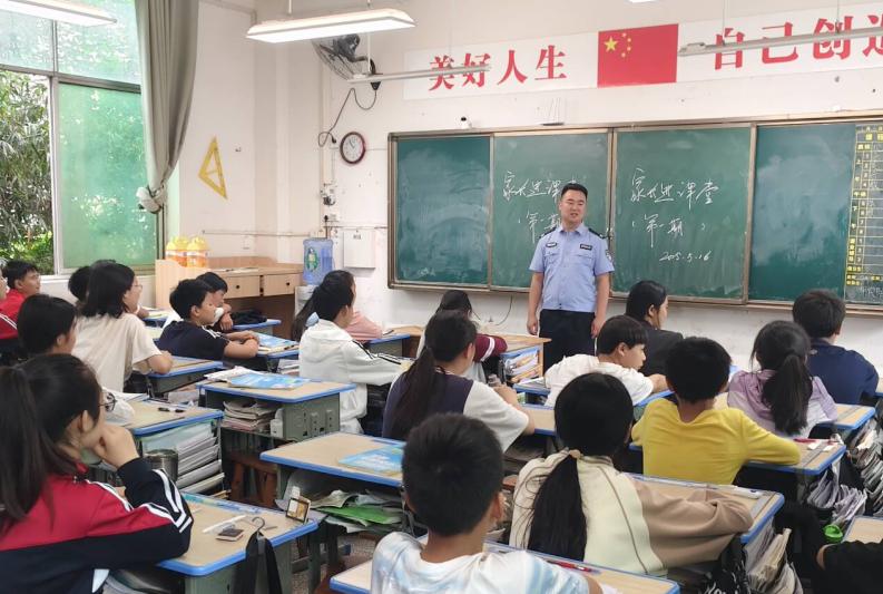 叙州区高场学校领航校区七年级(6)班黄明傧家长—高场派出所黄大学警官从预防校园欺凌、交通安全、森林防灭火、社会治安等方面,通过例举大量的真实案例给孩子们上了一堂生动的法治安全教育课,让孩子们明白要做一个坦坦荡荡、清清白白的人。