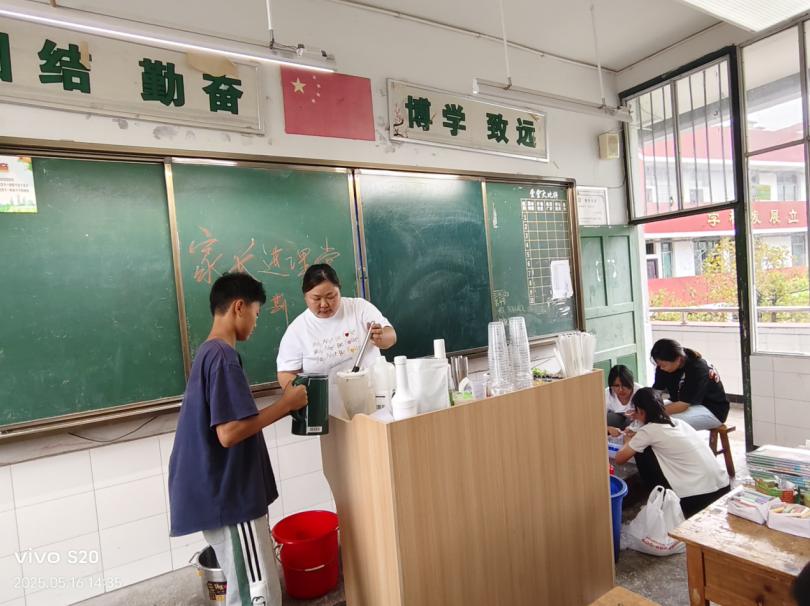 叙州区高场学校领航校区八年级(7)班周小莉家长马晓敏将自己的奶茶店搬进了教室,教孩子们如何制作果茶。马晓敏家长将所需食材搬到教室,一步一步的演示给学生看,让学生亲自操作,当学生把自制的果茶成功“卖出”的一瞬间,别提有多高兴了。这节手工劳动课让学生明白了亲手创造劳动成果的甘甜。