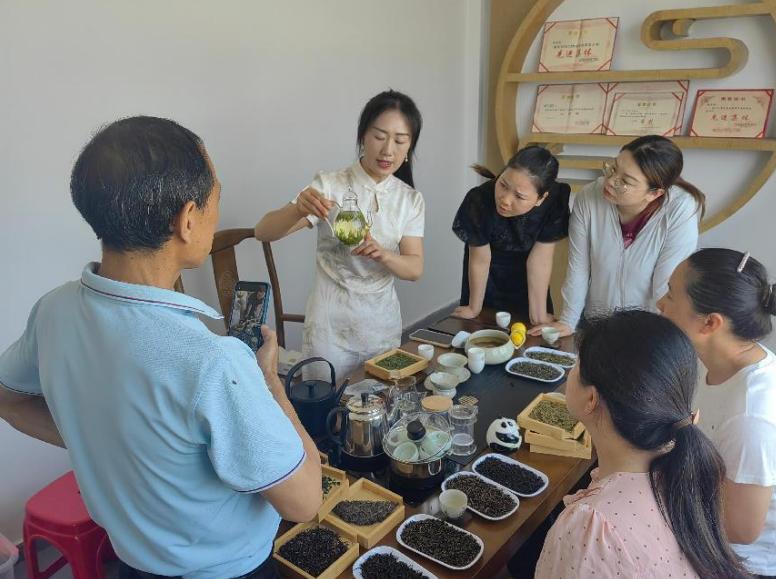 “我们宜宾人常说的青茶指的是绿茶,而实际上绿茶和青茶是两个不同的类别……”2025年5月20日,翠绿的茶山下,茶文化体验中心内茶香袅袅,一场别开生面的茶艺培训正在进行。为深入推进乡村振兴战略,挖掘特色产业发展潜力,宜宾市南溪区黄沙镇田兴村驻村第一书记蔡永红邀请国家高级茶艺师、原川红集团非遗宣传员周进到田兴村,为全体村干部开展了茶艺专题培训,助力茶旅融合发展迈出坚实步伐。