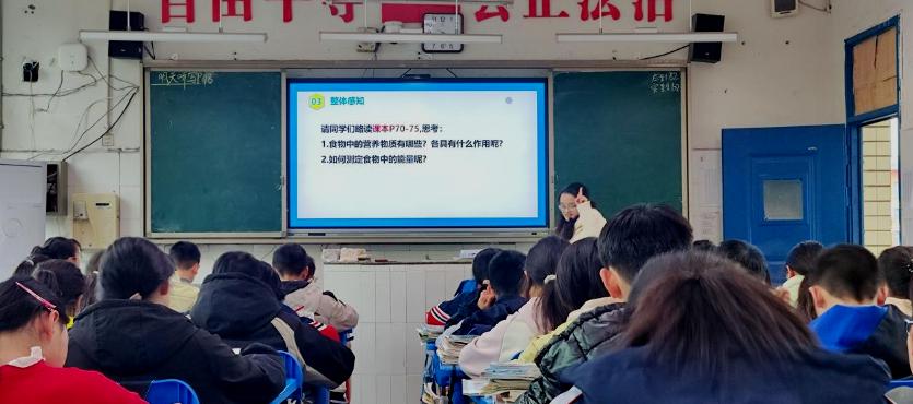 沈冬梅老师围绕《食物中的营养物质》,带领同学们寻找能量之源。通过认识航天员的生活,体会民族自豪感的同时引入食物中的营养物质。通过设计探究实验“测定种子中的能量”提高学生实验探究能力。