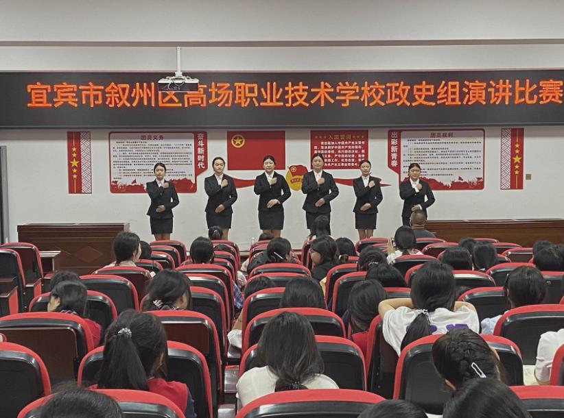 2025年5月20日,宜宾市叙州区高场职业技术学校举行了政史学科演讲比赛活动。本次活动以“实现中华民族伟大复兴”为主题,旨在通过演讲激发青年学子的爱国情怀与使命担当,吸引了全校师生积极参与,反响热烈。