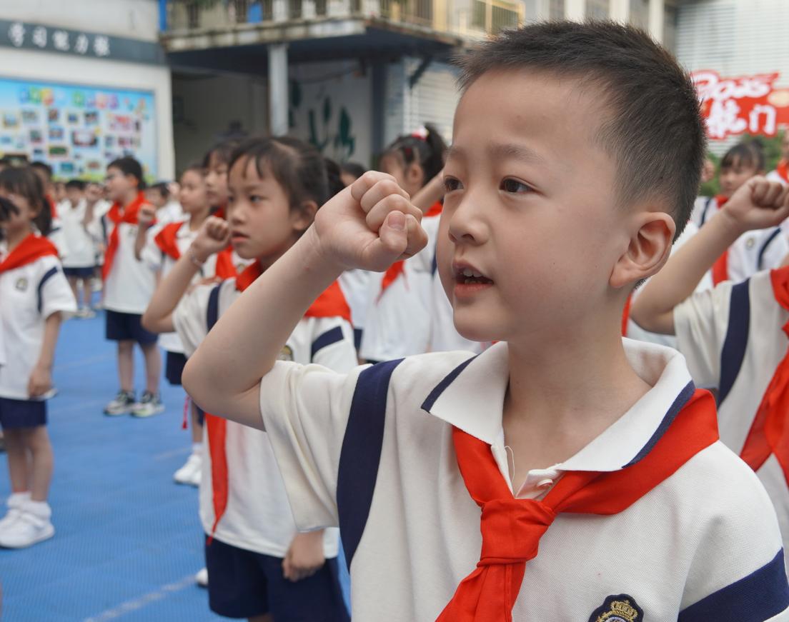升旗仪式上,伴随着激昂的《出旗曲》,少先队旗手们迈着坚定的步伐护卫队旗入场。全体队员肃立注目,高唱《中国少年先锋队队歌》,嘹亮的歌声传递着新时代少先队员的昂扬。