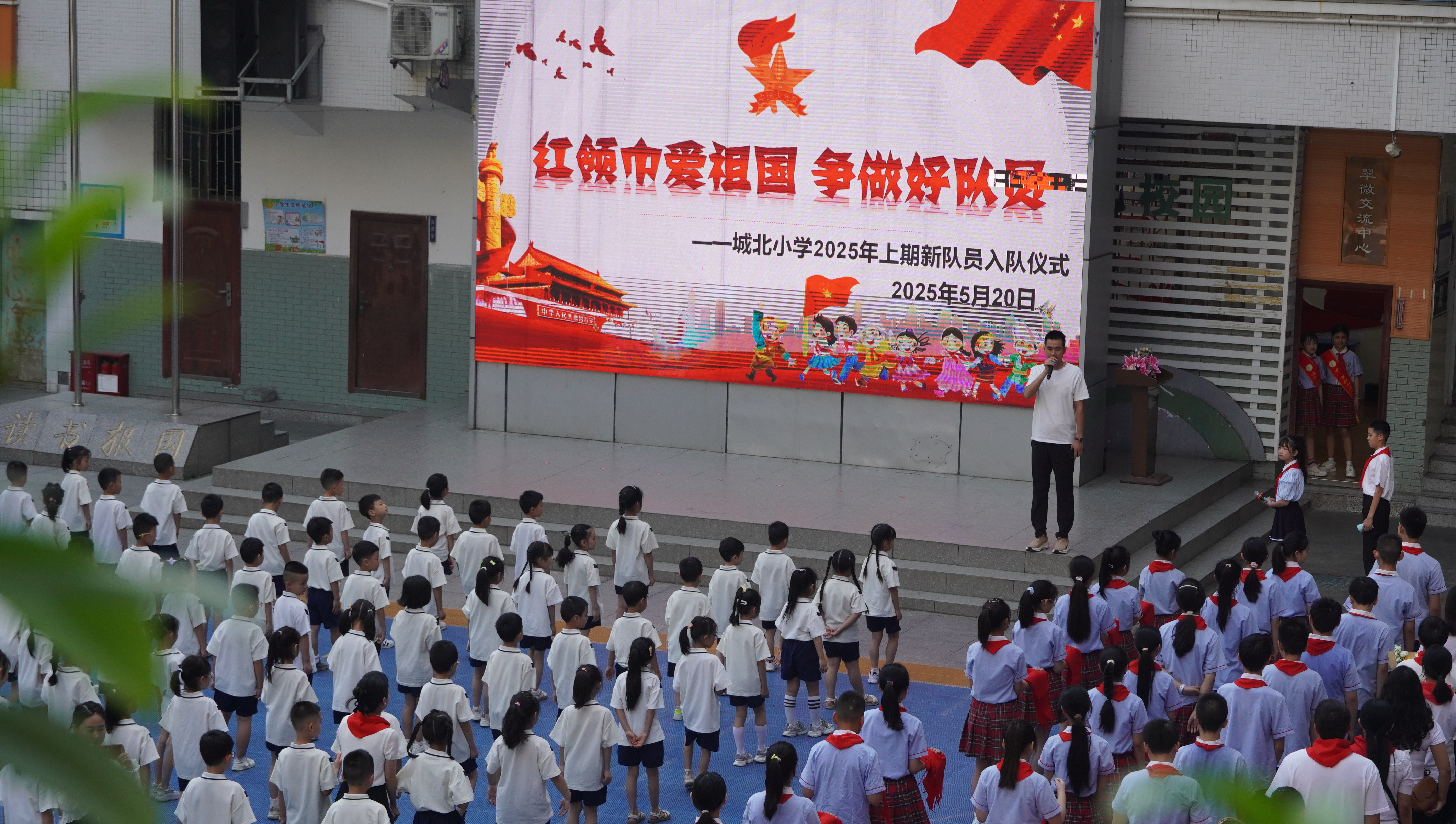为全面加强党、团、队一体化建设,强化对少年儿童的政治启蒙和价值观塑造,培养少先队员的光荣感和组织归属感。近日,遂宁市船山区城北小学举行了“红领巾爱祖国,争做好队员”一年级首批队员入队仪式。学校行政人员,一年级全体师生以及新队员家长参加了此次活动,共同见证这一光荣的时刻。