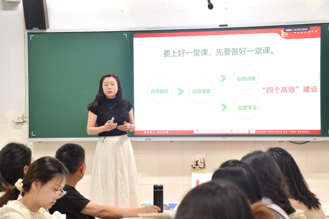 5月15日上午,四川省大英中学生物教研组组长苏茂媚老师应邀为学校高中生物组教师开展了一场以“高效教研,高效发展”为主题的经验分享会。苏老师结合自身学校情况与生物学科特点,从四大方面系统介绍了她们生物教研组的教研实践与成果,为学校生物教学教研提供了借鉴经验。苏老师首先强调高效的教研离不开学校政策的支持,学校应始终秉持“要上好一堂课,先要备好一堂课”的理念,以“四个高效”为核心推动教学改革,即“高效教研,高效课堂,高效训练,高效学法”。