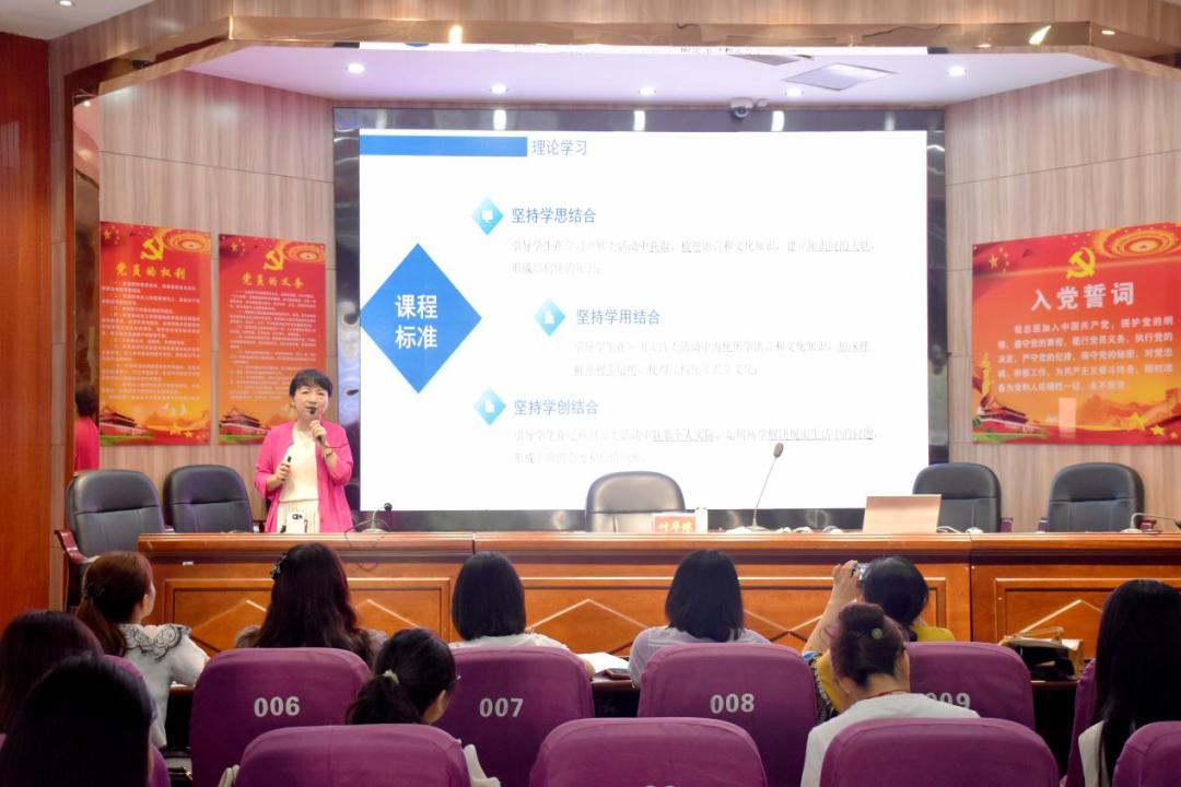 5月16日上午,成都市金牛区教科院英语教研员叶华琼老师围绕“基于英语学习活动观的英语教学理念和方法”这一主题展开交流。会上,叶老师用八卦图和鱼骨图,为学校初中英语教师详细的阐释了初中英语课堂如何以核心素养为导向践行英语学习活动观。接着,又以七年级听说课和八、九年级阅读课为例,带领大家从理论学习到实践操作,学校教师通过交流学习,逐渐领会如何以英语学习活动观为指导,进行初中英语教学活动设计。