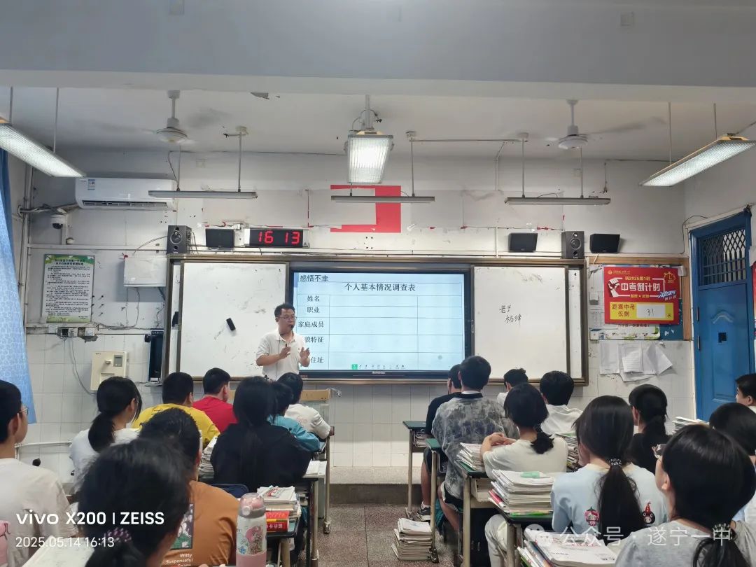 主题班会课上,张立敏教师执教的《树立远大理想,创造辉煌人生》,以AI情景模拟,带学生穿越时空对话历史先贤,感悟家国情怀,鼓励学生们将个人理想融入民族复兴伟业;赵佳雯教师以心理学“情感账户”理论为切入点,通过“匿名树洞”倾听困惑,用“十年之约”辩论赛引导学生理性看待情感与成长的关系,倡导“以自律守护青春,以奋斗沉淀价值”;杨小琴教师、尹瑶教师分别设计了“角色互换体验剧”,让学生化身“家长”演绎生活矛盾,通过“非暴力沟通四步法”练习,掌握倾听与表达的技巧,搭建起了亲子情感沟通桥梁。
