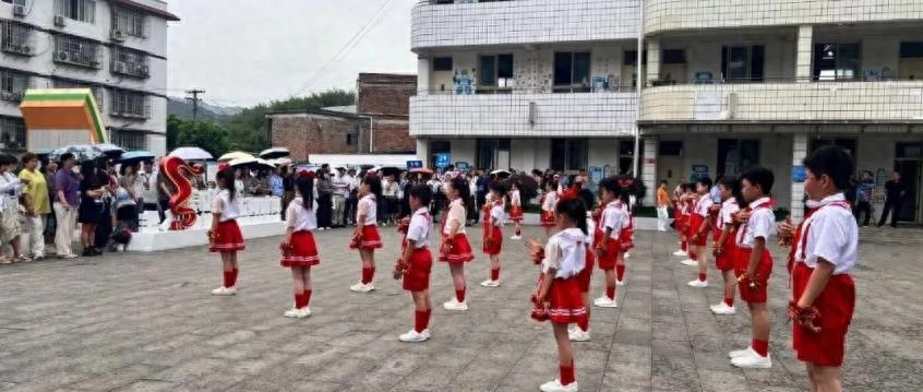南广镇是哪吒传说的诞生地,叙州区南广学校的孩子们学哪吒,演哪吒,画哪吒,随着《小哪吒》大课间主题曲响起,全校同学精神抖擞地步入操场展示特色大课间活动,整齐划一的动作时而如蛟龙出海般挥舞混天绫,时而如小魔童闹海般转动乾坤圈。整套动作刚柔并济,既展现了传统武术的力道,又融入了现代儿童舞蹈的韵律。整个操场仿佛变成了神话故事的演绎现场。