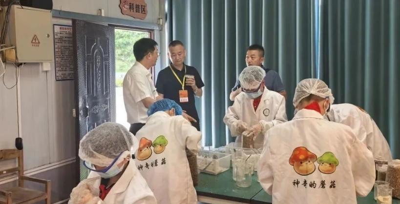 孩子们熟练地采摘、分装菌包,展示项目式学习成果。