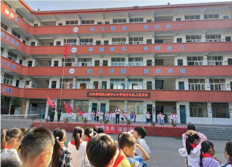 2025年5月26日,旭日东升之时,江安县四面山镇中心小学校操场上迎来了一场庄严而温暖的少先队入队仪式。一年级的新队员在全体师生见证下光荣的加入了中国少年先锋队。