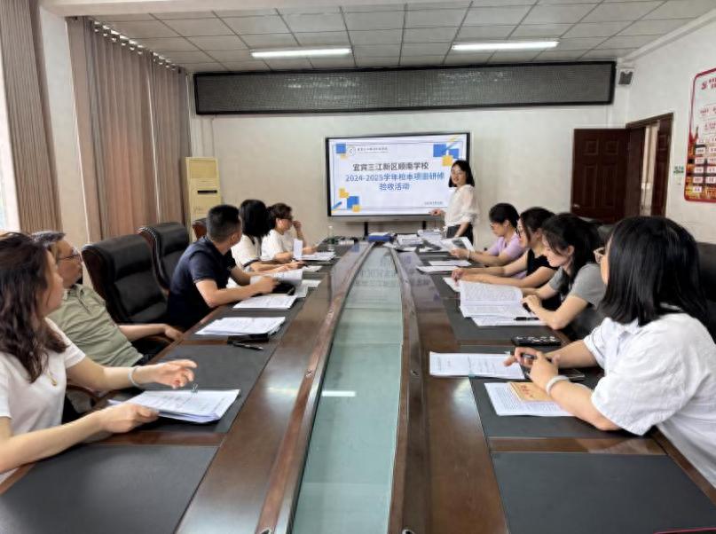 春风催新绿,桃李启新程。为扎实推进2024-2025校本研修建设,实现教师培训的提质增效,检验学校在校本研修及学用转化方面的成果。近日中午,在宜宾三江新区顺南学校校长洪进的带领下,小学和初中骨干教师及各个学科带头人组成的专家评审组,对学校本教研工作进行了验收。