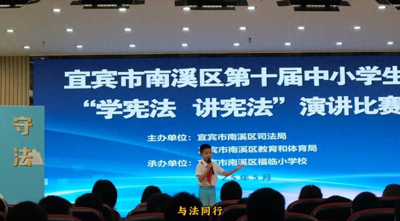 2025年5月24日,在宜宾市南溪区第十届“学宪法 讲宪法”演讲比赛的舞台上,南溪区仙源小学校盛博轩同学脱颖而出,凭借卓越的表现斩获小学组第一名的佳绩。