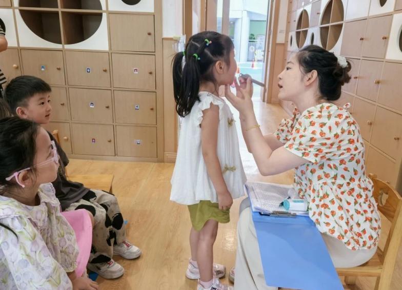 班级晨检时三江新区红星幼儿园中三班星星老师发现一名幼儿精神不振,星星老师马上对幼儿进行了体温检测、手口检查,通过检查发现该幼儿疑似手足口症状,星星老师和班级幼儿立即做好防护,电话告知保健医生并带幼儿至保健室进行隔离观察。
