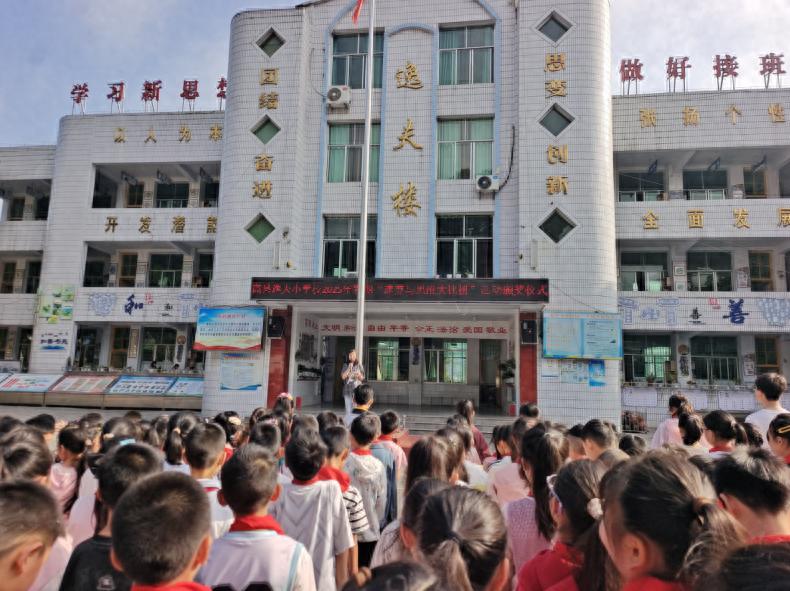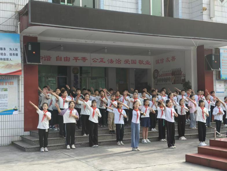 晨光初露,清风徐来。伴随着激昂的国歌声,五星红旗冉冉升起。高县逸夫小学校全体师生庄严肃立,行注目礼、少先队员行队礼,目光坚定地注视着国旗,浓浓的爱国之情在心中激荡,孩子们稚嫩的脸庞上满是自豪,展现出蓬勃向上的精神风貌。