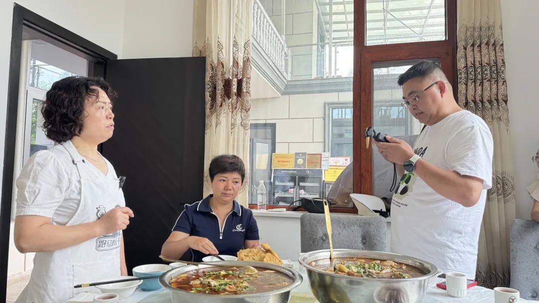 “跑马滩”坛子肉负责人徐艳与中心工作人员交流现场