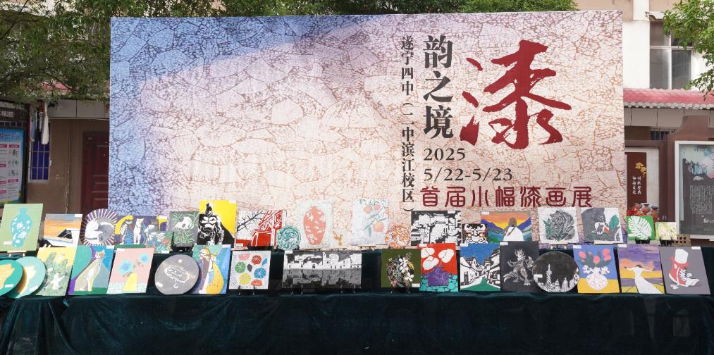 遂宁四中(二中滨江校区)漆画课程以“守正创新,以美培元”为导向,以美浸润校园,浸润心灵。课程立足传统漆艺实践创作,倡导以人为本,并以继承和弘扬中国优秀传统文化与艺术为宗旨,进行传统漆艺蛋壳镶嵌探索,将传统工艺、艺术理论与创作实践相结合,使用蛋壳镶嵌技法进行漆画创作。