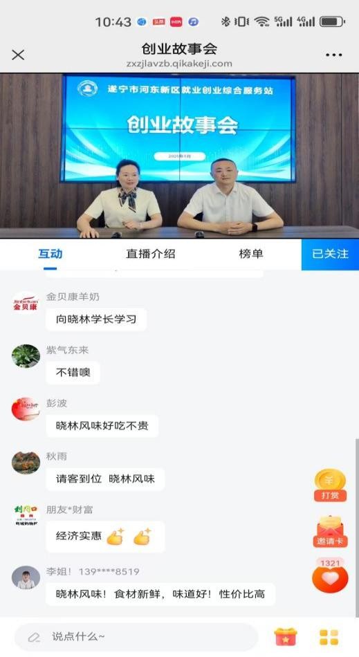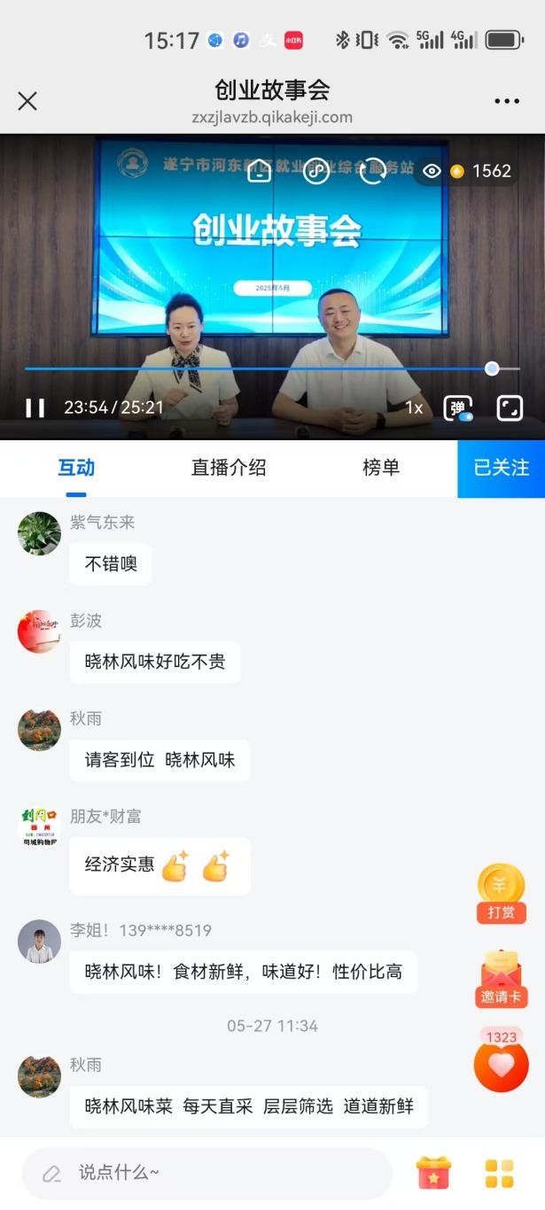 5月27日,遂宁市河东新区就业创业综合服务站举行第二场创业故事分享会,为近1600名线上观众带来了遂宁餐饮界的风云人物——晓琳风味菜创始人郑晓林先生的创业故事分享。