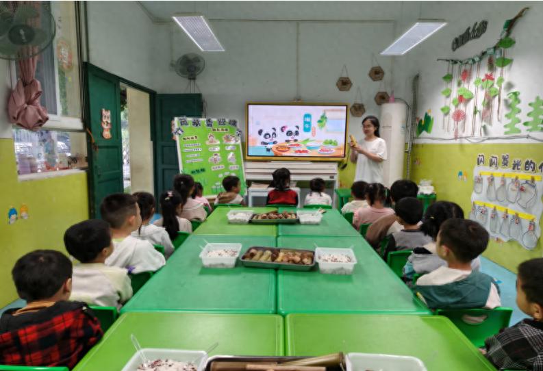 活动伊始,江安县仁和镇中心幼儿园教师通过播放动画短片、讲述屈原故事、展示端午习俗图片等形式,向孩子们介绍端午节的由来、赛龙舟、挂艾草等传统习俗,孩子们专注聆听,积极举手提问,初步理解了端午节的文化内涵。随后,该园教师特别引入竹筒饭的历史渊源,讲述古人以竹筒储粮、蒸煮美食的智慧,激发幼儿对后续制作环节的期待。