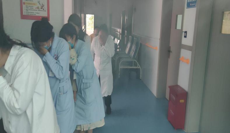 消防知识培训会后,模拟住院部发生火灾,高县嘉乐镇卫生院住院患者及医护人员有序疏散至安全空地,并进行了初期火灾的灭火实际演练。