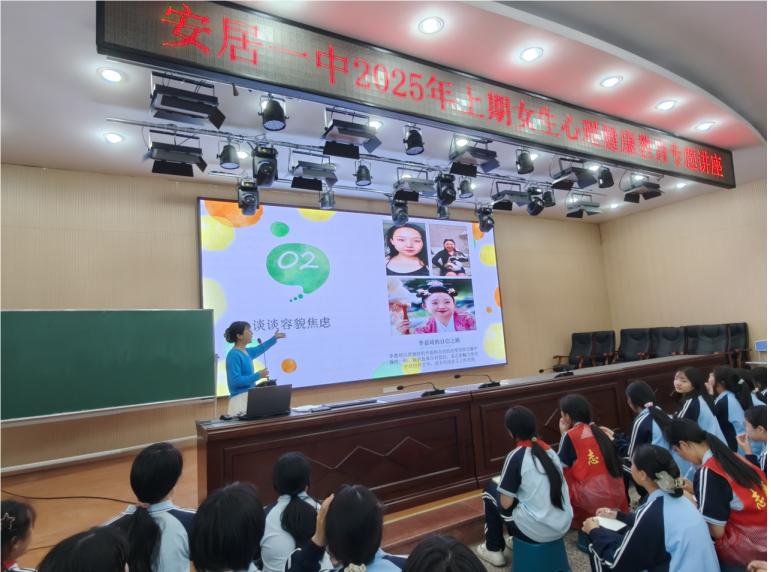 活动前期,学校心理健康教师彭丹凤为女生们带来了一场“种自己的花,爱自己的宇宙”专题讲座。讲座中,彭老师聚焦当下女生普遍面临的容貌焦虑、自我认知偏差、自我接纳困难以及人际交往困惑等问题,结合大量真实案例展开深入剖析与讲解。