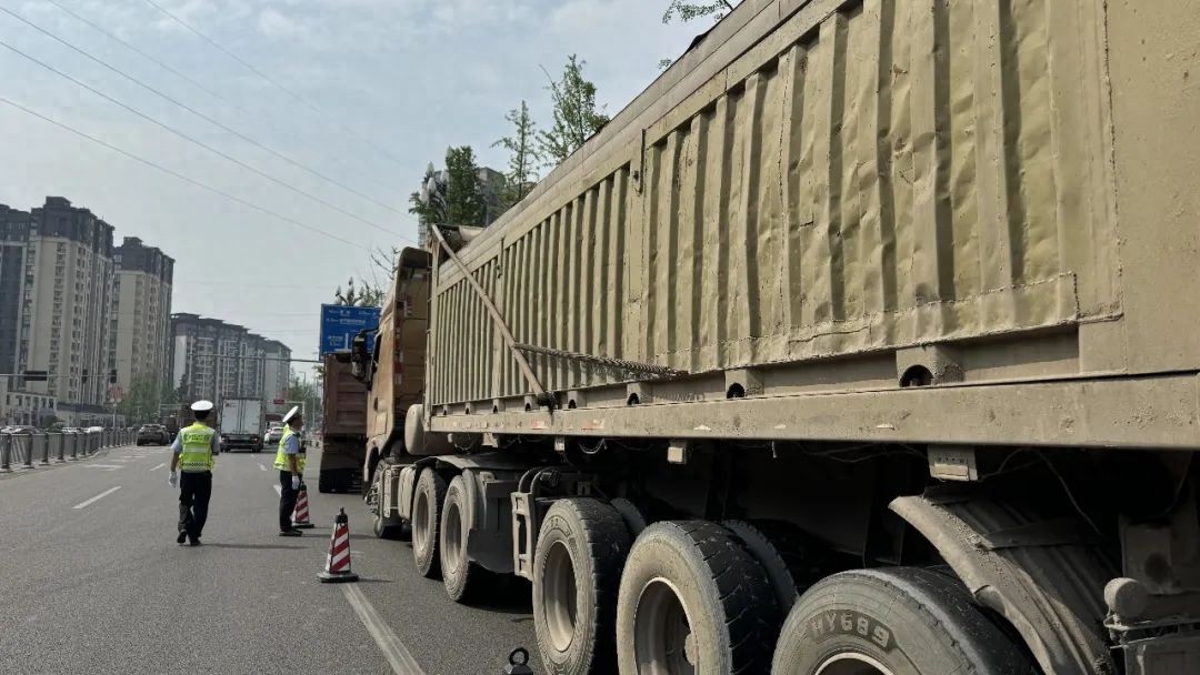 随后,另一辆后围挡缺失、安全设施不齐全的大货车也被查处。执法人员向驾驶员详细说明隐患:“货车后围挡缺失,一旦后方小车或电动车因刹车不及追尾,极易钻入车底,造成严重交通事故。此次先进行整改,后续若再发现类似问题,将依法予以处罚。”