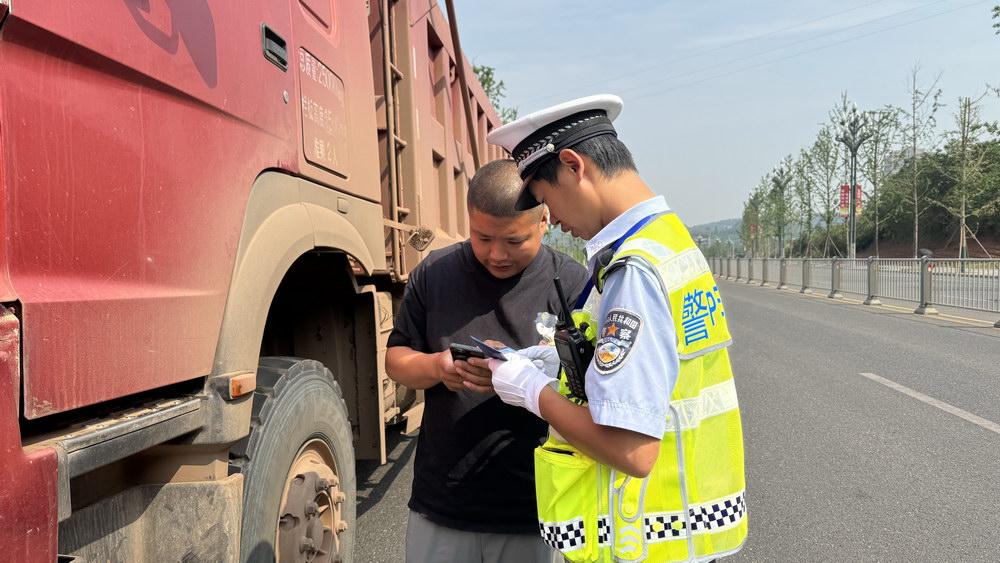 据了解,遂宁高新区在建工地集中、物流企业众多,国道318线穿境而过,因此,每日大货车通行量极大,交通管理压力突出。市公安局交警支队直属三大队精准施策,采取“固定卡点 + 流动巡查”相结合的模式,在重点路段、关键节点严密布控,构建起全方位、多层次的执法网络,靶向整治大货车交通违法“顽疾”。