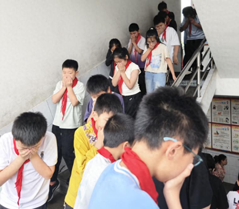 紧接着,校园内又响起了急促的地震警报声,防震应急疏散演练随之启动。高县逸夫小学校老师们第一时间停止授课,果断指挥学生迅速躲到课桌下或墙角处,指导学生用书包、书本等物品保护好头部和颈部,身体尽量蜷缩,降低重心,以最大程度减少可能受到的伤害。随着第二次地震报警声响起,该校老师们迅速组织学生有序撤离教室。学生们沿着预定的疏散路线,双手紧紧抱头,快速前行。各楼层的疏散引导员坚守在楼梯口、走廊等关键位置,认真指挥,全力确保学生安全疏散,有效避免了拥挤、踩踏等事故的发生。最终,学生们快速疏散到学校操场的指定安全区域,并以班级为单位整齐集合。
