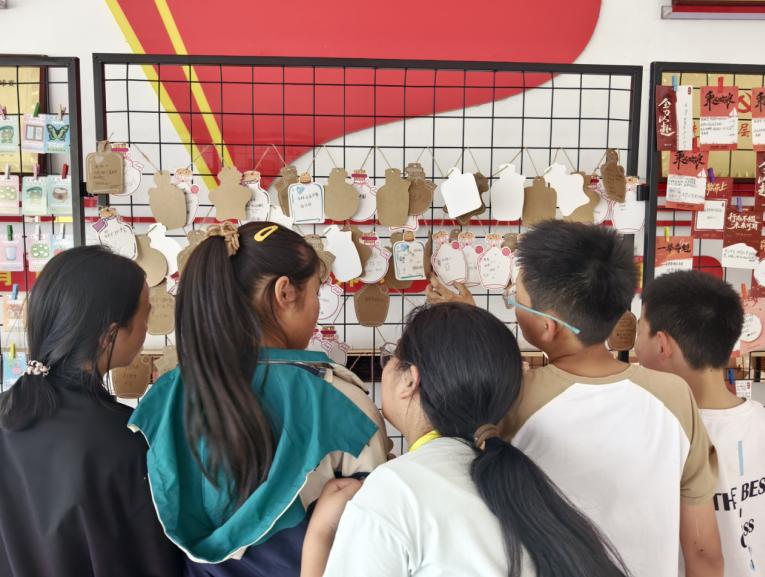 在校园内布置一面象征希望的“星语心愿墙”。提供许愿瓶形状的卡片,邀请学生匿名或署名写下自己近期的愿望、小目标、对未来的憧憬或心中的困惑。屏山县新安镇九年一贯制学校学生们认真书写,将卡片悬挂,许愿墙上星光点点:“希望期末考试进步”、“想交到更多朋友”、“希望家人健康快乐”、“希望自己更勇敢一点”、“想了解如何控制坏脾气”……这成为学生表达心声、寄托希望的安全树洞。心理老师定期关注卡片内容(尤其涉及求助信号时),了解学生普遍心理动态,为后续工作提供依据,也让学生的“心愿”被看见、被尊重。