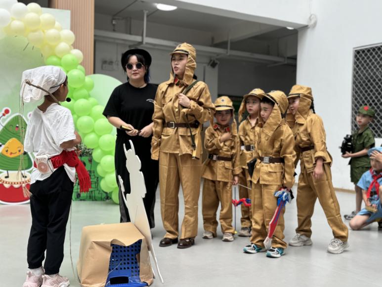 红色演绎,传承精神。宜宾市志城幼儿园海贝班的小可爱们带着篮球闪亮登场,小小篮球在他们手中仿佛变成了革命信念的火种,随着动感的旋律跳动,展示出别样的红色精彩。该园海船班宝贝、家长、老师以《抗日英雄赵一曼》为题,用深情朗诵诉说悲壮过往,借灵动手势舞展现英雄母亲的柔情与刚强。该园海星班的师幼们以饱满的热情,声情并茂地演绎了《英雄王二小》的故事,他们生动地还原了王二小从一个普通放牛娃,成长为勇敢小英雄的历程。该园海绵班的师幼们通过演绎《学习雷锋好榜样》的助人场景,将雷锋精神生动地呈现在大家面前,激励着孩子们在今后的生活中,也要以雷锋为榜样,乐于助人。